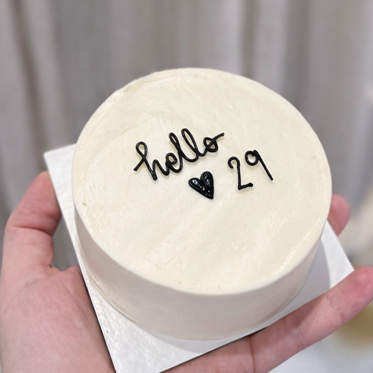 Una mini cake minimalista con un mensaje claro, recibes un nuevo año con optimismo y amor!!